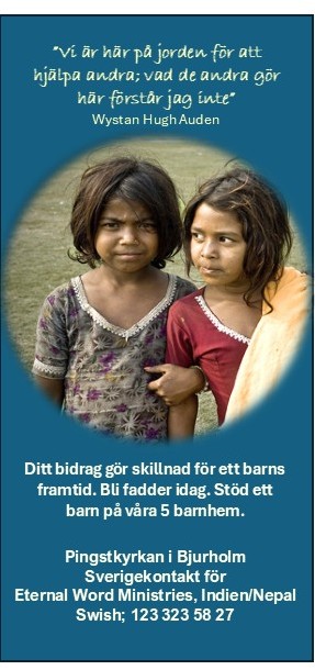 Vi är enormt tacksam för att få vara en del av denna apostoliska tjänst - och få vara Sverigekontakt för EWM i vårt land. Tillsammans kan vi utgöra en skillnad för de allra minsta i världens folkrikaste land. Kontakta oss gärna.